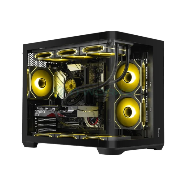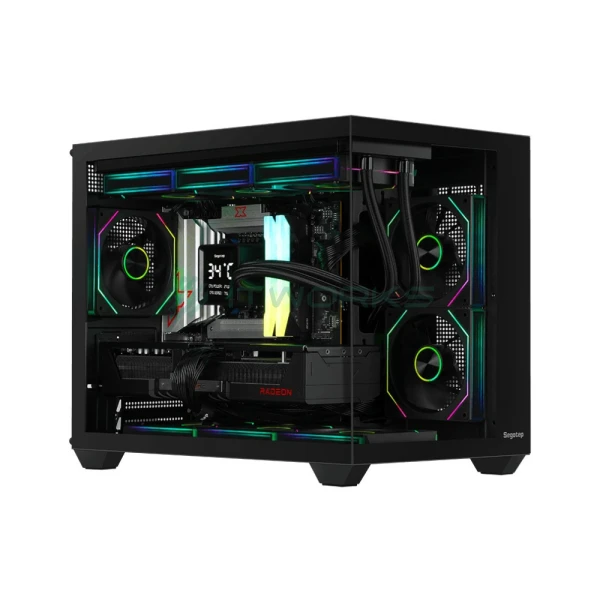 კომპიუტერის ქეისი: Segotep Lumi 3S - Mid Tower, Micro-ATX, Desktop Gaming PC Case, Panoramic Tempered Glass, Up to 360mm Radiator Support - Without Fans (Black)