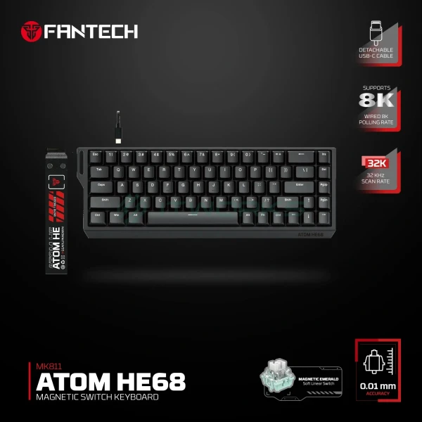| ბრენდი | მოდელი | Fantech ATOM HE68 MK811 8K Wired Gaming Keyboard with Magnetic Switch (Black) |