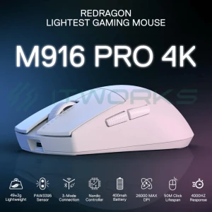 | ბრენდი | მოდელი | Redragon M916W-PRO-4K K1NG Pro Wireless 4K Gaming Mouse (White) |
