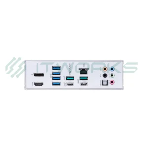 შემომავალი პორტები უკანა პანელზე 1x USB 3.2 Gen 2x2 port(s), 1x USB Type-C®, 3x USB 3.2 Gen 2 ports, 2x Type-A, 1 x Type-C®, 4x USB 3.2 Gen 1 ports, 4x Type-A, 1x DisplayPort 1x HDMI® port, 1x Intel® 2.5Gb Ethernet port, 5x Audio jacks, 1x Optical S/PDIF out port