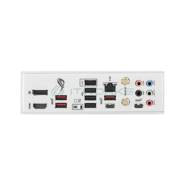 | შემომავალი პორტები უკანა პანელზე | 1x USB 3.2 Gen 2x2 port (1 x USB Type-C®), 4x USB 3.2 Gen 2 ports (3 x Type-A + 1 x USB Type-C®), 4x USB 2.0 ports (4 x Type-A), 1x DisplayPort 1 x HDMI® port 1 x Wi-Fi Module 1 x Intel® 2.5Gb Ethernet port 5 x Audio jacks |