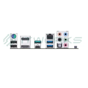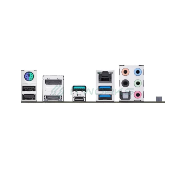 | შემომავალი პორტები უკანა პანელზე | 1 x USB 3.2 Gen 2x2 port (1 x USB Type-C®) 1 x USB 3.2 Gen 2 port (1 x Type-A) 2 x USB 3.2 Gen 1 ports (2 x Type-A) 2 x USB 2.0 ports (2 x Type-A) 1 x DisplayPort 1 x HDMI® port 1 x V-M.2 slot (Key E) 1 x Realtek 2.5Gb Ethernet port 5 x Audio jacks 1 x Optical S/PDIF out port 1 x PS/2 Keyboard/Mouse combo port |