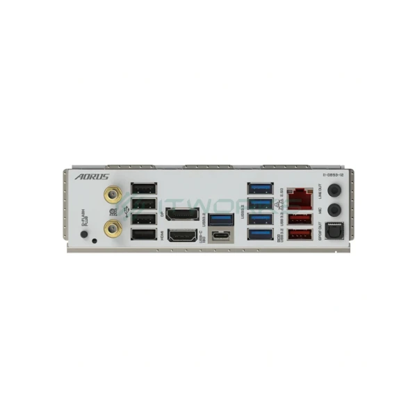 შემომავალი პორტები უკანა პანელზე 2x SMA antenna connectors (2T2R)jk, 1x DisplayPort, 1x HDMI port, 1x USB Type-C® port, with USB 3.2 Gen 2 support, 2x USB 3.2 Gen 2 Type-A ports (red) 5 x USB 3.2 Gen 1 ports 4 x USB 2.0/1.1 ports 1 x RJ-45 port 1 x optical S/PDIF Out connector 2 x audio jacks