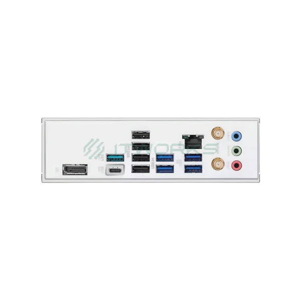 | შემომავალი პორტები უკანა პანელზე | 1 x USB 20Gbps port (1 x USB Type-C® with DP Alt mode) 1 x USB 10Gbps port (1 x Type-A) 4 x USB 5Gbps ports (2 x Type-A) 4 x USB 2.0 ports (4 x Type-A ) 1 x DisplayPort 1 x Wi-Fi module 1 x Realtek 2.5Gb Ethernet port 3 x Audio jacks |