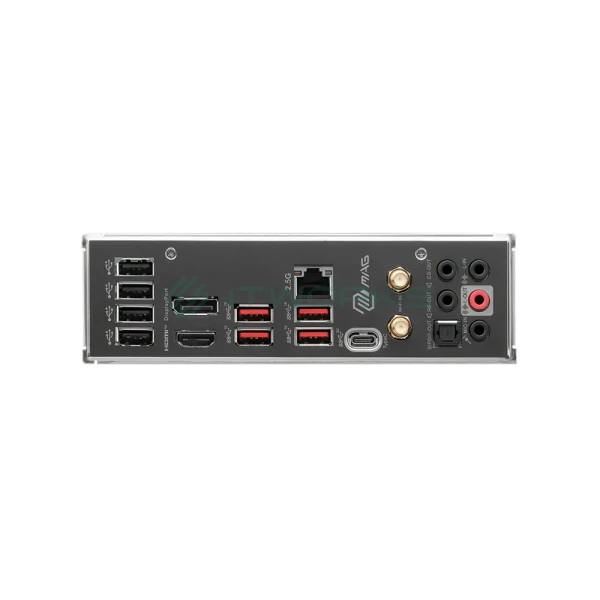 შემომავალი პორტები უკანა პანელზე 1x HDMI, 1x DP, 4x USB 2.0, 4x USB 3.2 Gen 2 10Gbps Type-A, 1x USB 3.2 Gen 2x2 20Gbps Type-C, 1x 2.5G LAN Port, 2x Wi-Fi / Bluetooth Antenna, 1x Optical S/PDIF OUT, 5x 3.5mm Audio
