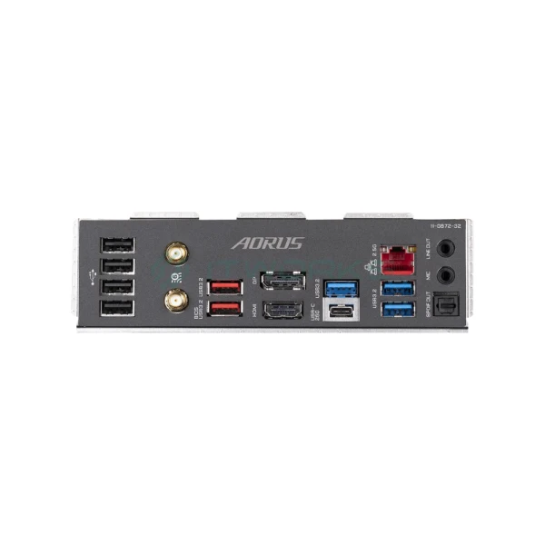 | შემომავალი პორტები უკანა პანელზე | 1 x USB Type-C® port, with USB 3.2 Gen 2x2 support 2 x USB 3.2 Gen 2 Type-A ports (red) 3 x USB 3.2 Gen 1 ports 4 x USB 2.0/1.1 ports 2 x SMA antenna connectors (2T2R) 1 x HDMI 2.0 port 1 x DisplayPort 1 x RJ-45 port 1 x optical S/PDIF Out connector 2 x audio jacks |